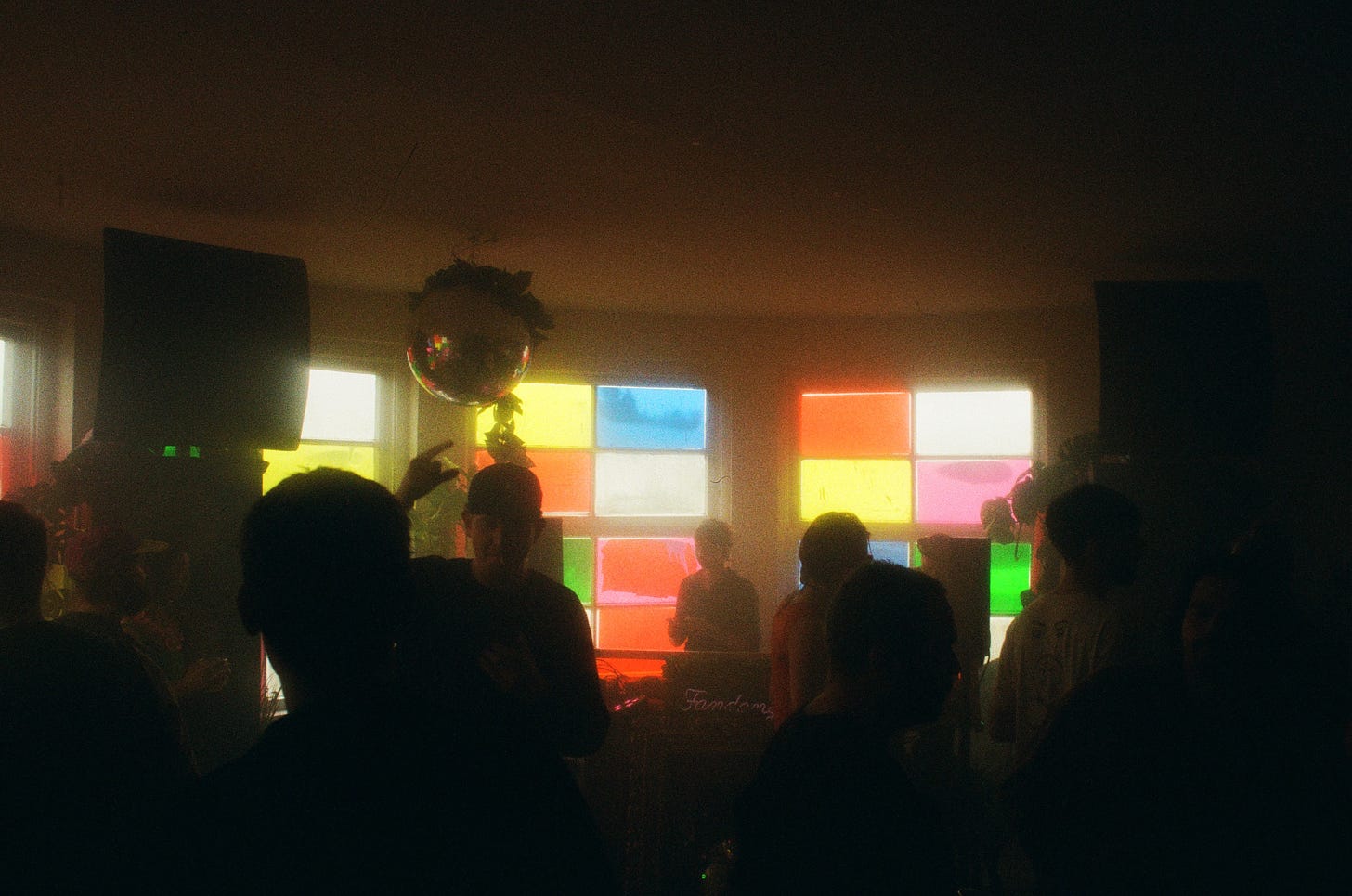 On the outskirts of a brutalist city, a technicolour party thrives.